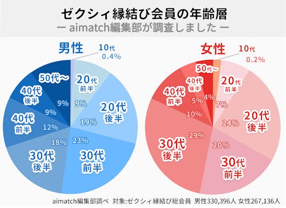ここで、20代~40代が多く集まる婚活アプリゼクシィ縁結びに登録している会員の年齢層を見て見ましょう。